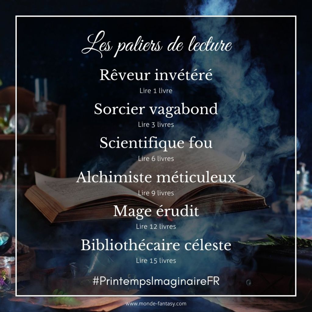 – Pour partager vos lectures, vous pouvez utiliser les hashtags #PrintempsImaginaireFR, #ImaginaireFR et #SFFFFr (les deux derniers pouvant être utilisés toute l’année)